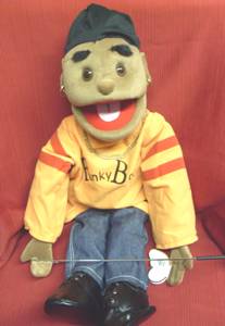 Several puppets are 28 inches from top of head to tip of toes and can accommodate adult-size hands. Their large size makes them especially good for ventriloquist use before large audiences.